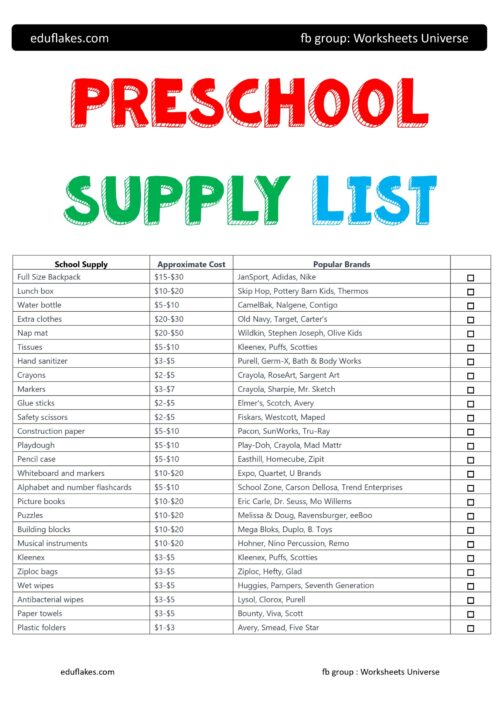 Preschool supply list for teachers and homeschool