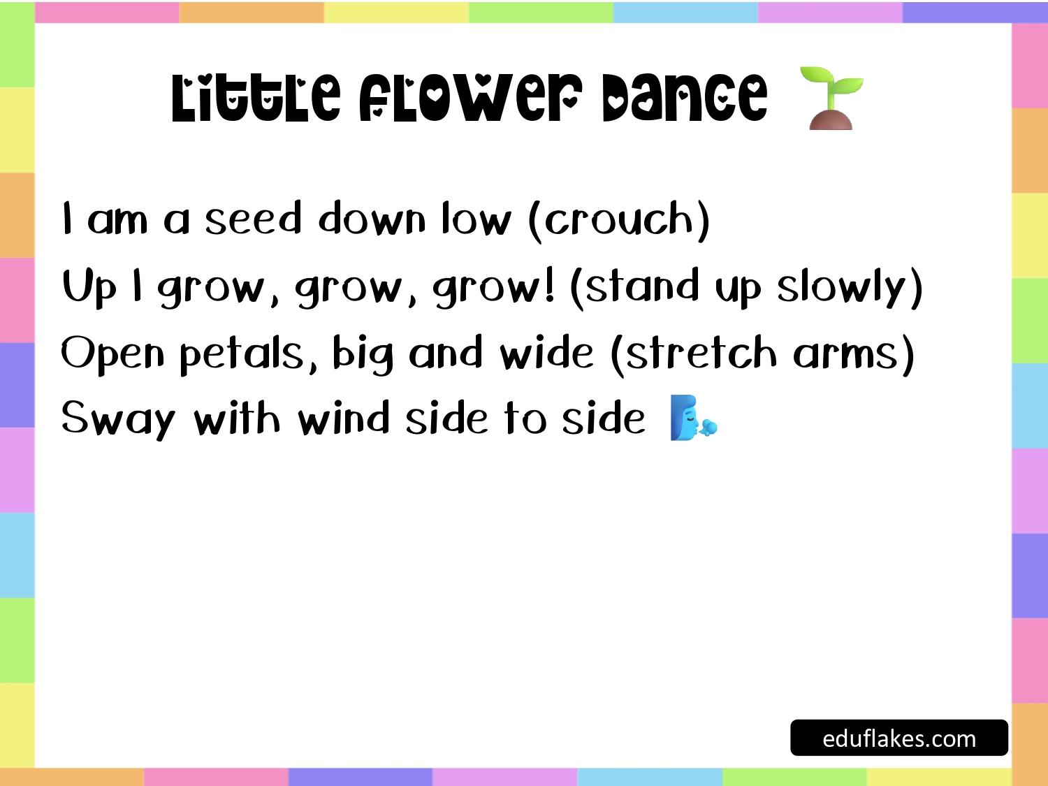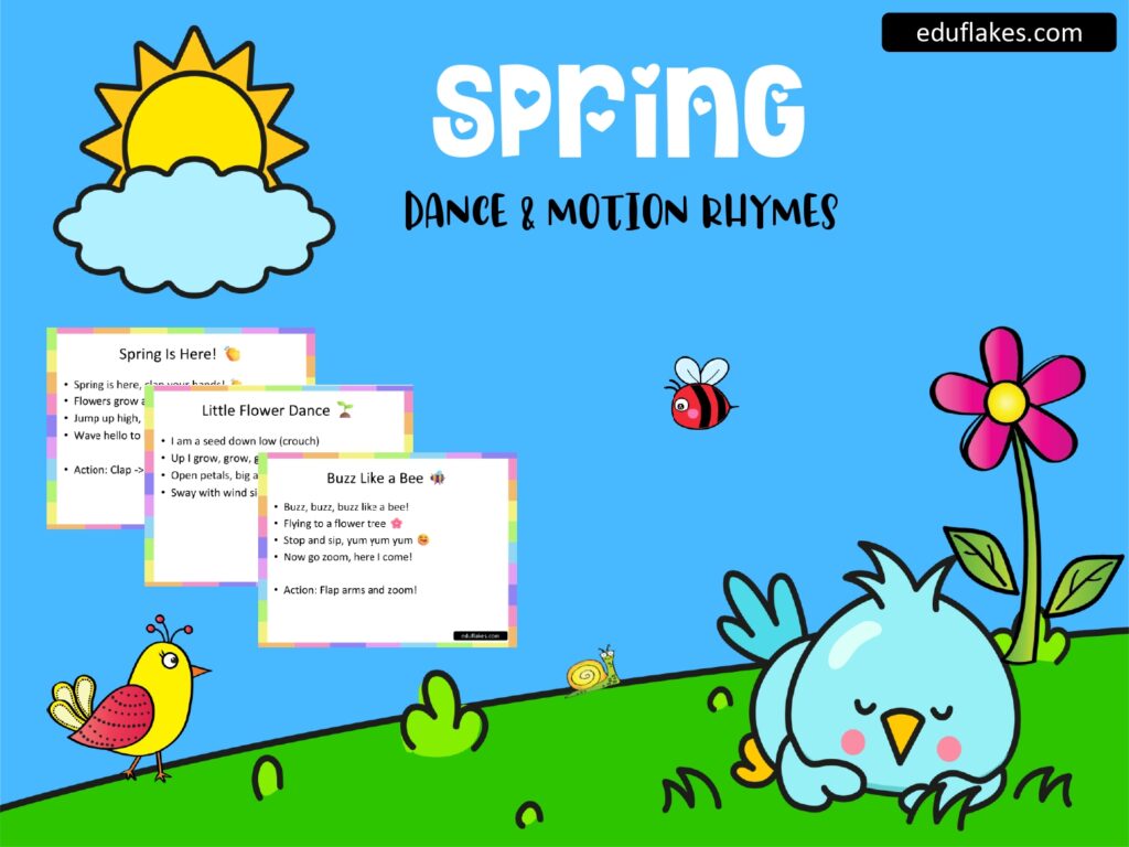 If you are looking for fun and engaging spring dance and motion rhymes for kindergarten, this free PDF from eduflakes.com is a must-have resource.