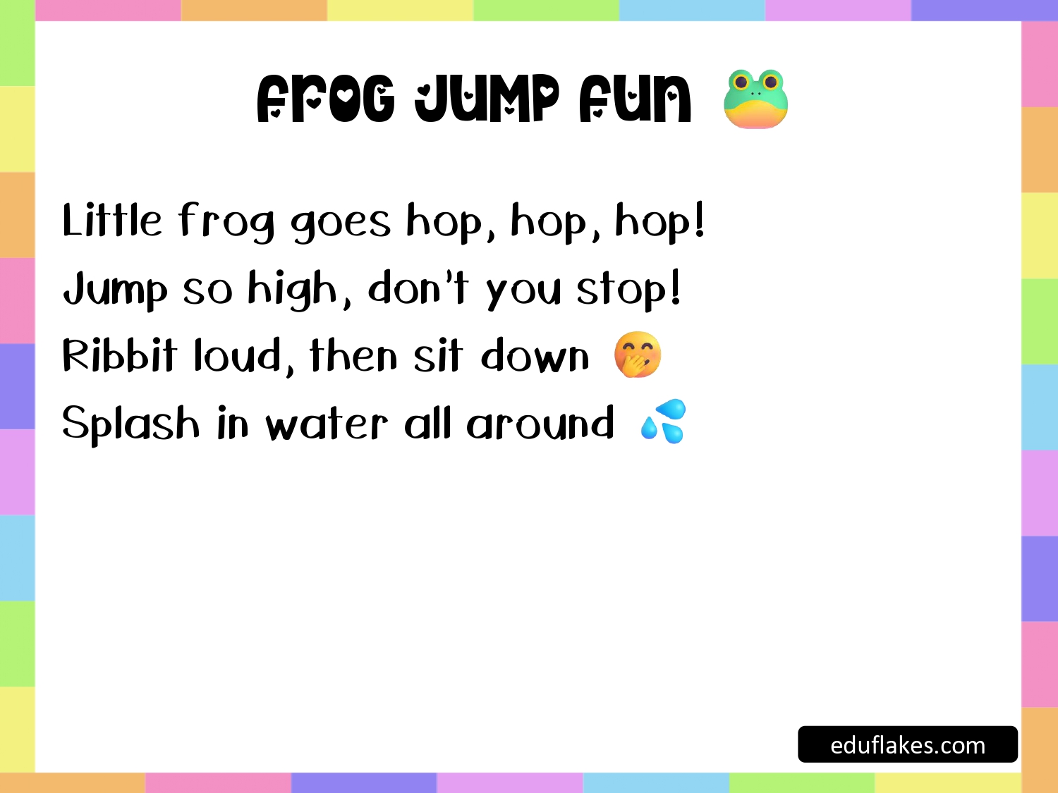 - “Frog Jump Fun” – hop like a frog